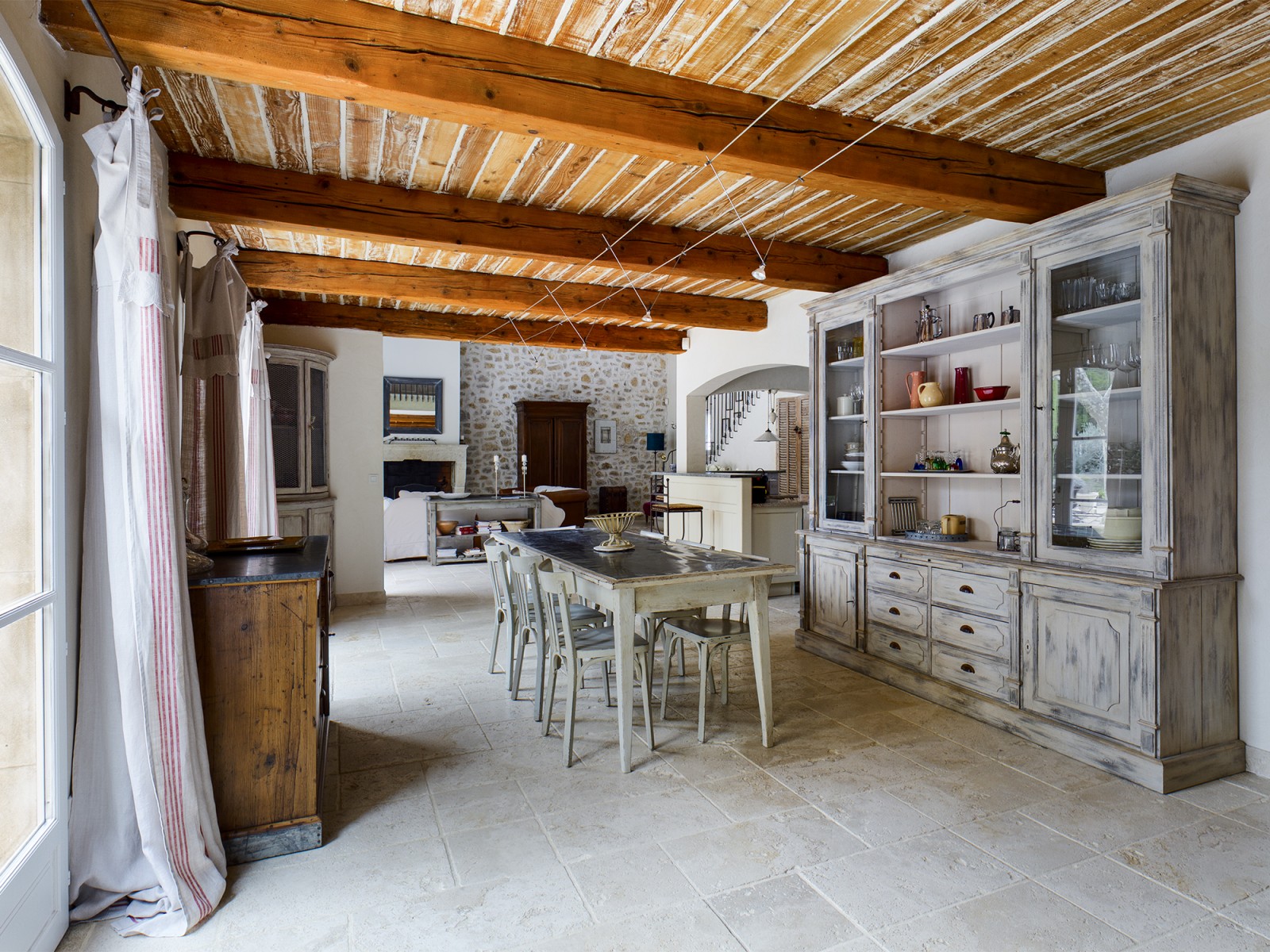 Au rez-de-chaussée de la maison, l’entrée principale donne sur une cuisine provençale entièrement équipée ouverte sur la pièce à vivre avec son toit cathédrale. Vous apprécierez leur fraîcheur l’été et leur coté cosy l’hiver avec la splendide cheminée.